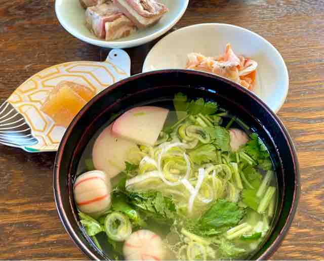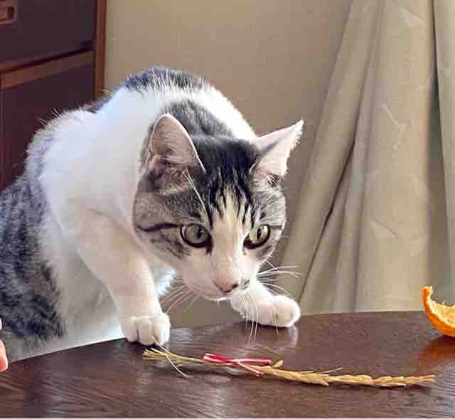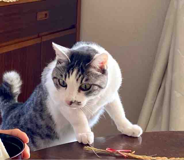 娘の雑煮を狙うなつ。
