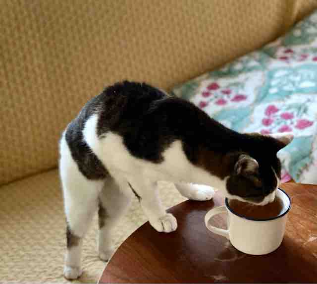 ウチの黒猫さんはすずさまみたいなポーズで牛乳飲んでます。ネコがヒトの牛乳良いのか?と思うのだけれど。
