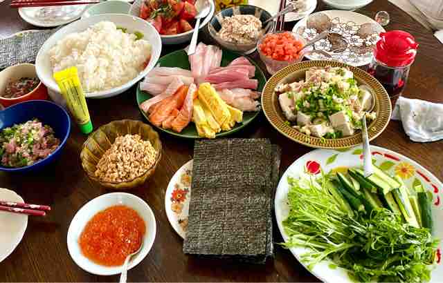本日昼は老母・初老の入り口付近にいる姉妹の三人で我が家で手巻き寿司をするので、9時頃スーパーへ。開店早々なのに混んでいた。私は客が到着した時点で台所が片付いてないとアレなタイプなんで忙しや〜刺身は切るだけだけど、野菜切ったり、副菜みたいの作ってたらあっちゅーまに12時。1時から食べ始めたんだけど、年よりばかりだから、そんなに減らなかった(笑)誰かが平らげてくれりゃ報われるのだが。わたしゃ家族の中では大食いの位置にいたのに、5枚ほど巻いたらお腹いっぱい。落ちたもんだよ。